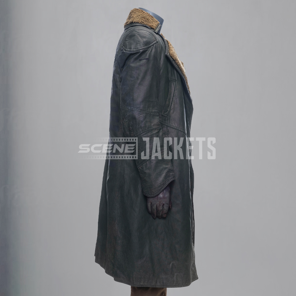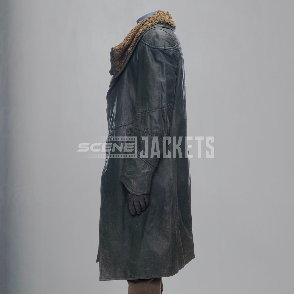 Inspired by Ryan Gosling’s portrayal of Officer K in Blade Runner 2049, this cosplay trench coat is crafted for fans who want to channel the futuristic, dystopian style of the film. Made from durable cotton, the coat comes in a dark green color that mirrors the iconic look from the movie. It features a soft fur collar for added warmth and authenticity, along with a quilted polyester lining to ensure comfort during wear.
