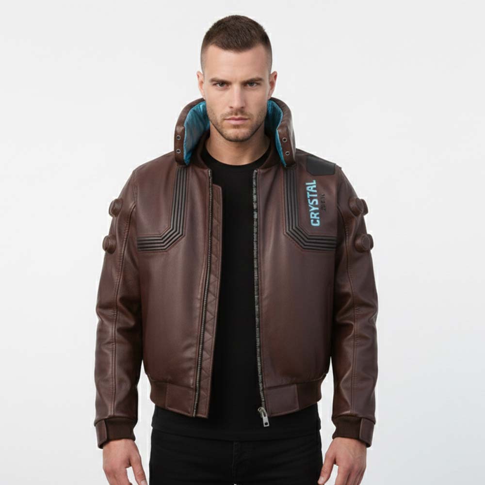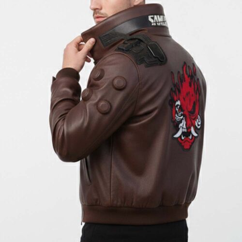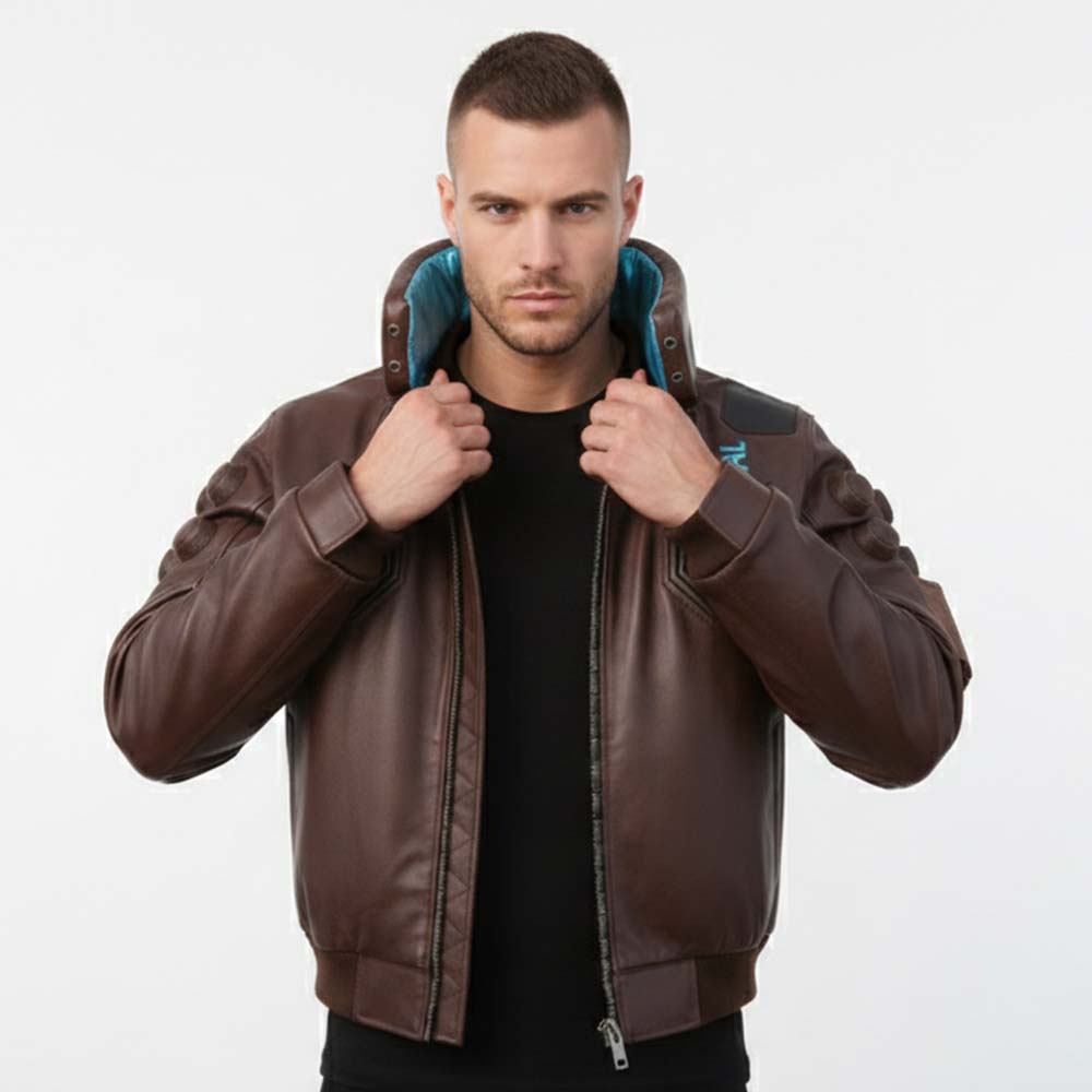 A perfect recreation of the main protagonist’s outerwear, this brown leather bomber combines futuristic street fashion with game-accurate design—ideal for cosplay, collectors, and fans of the Cyberpunk universe.